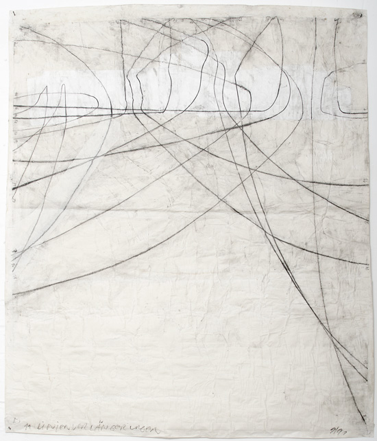 "LINIENVERLÄNGERUNG I" | 1991 | Zeichnung auf Papier | 132 x 115 cm